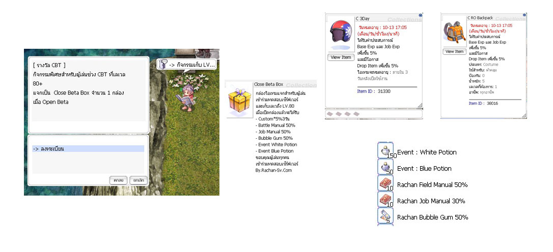 เพียงคุณเก็บ เลเวลตามเวลาที่กำหนด 1-80 ได้ทุกอาชีพ สามารถรับรางวัลได้ที่ Npc ( ช่วง OpenBeta )