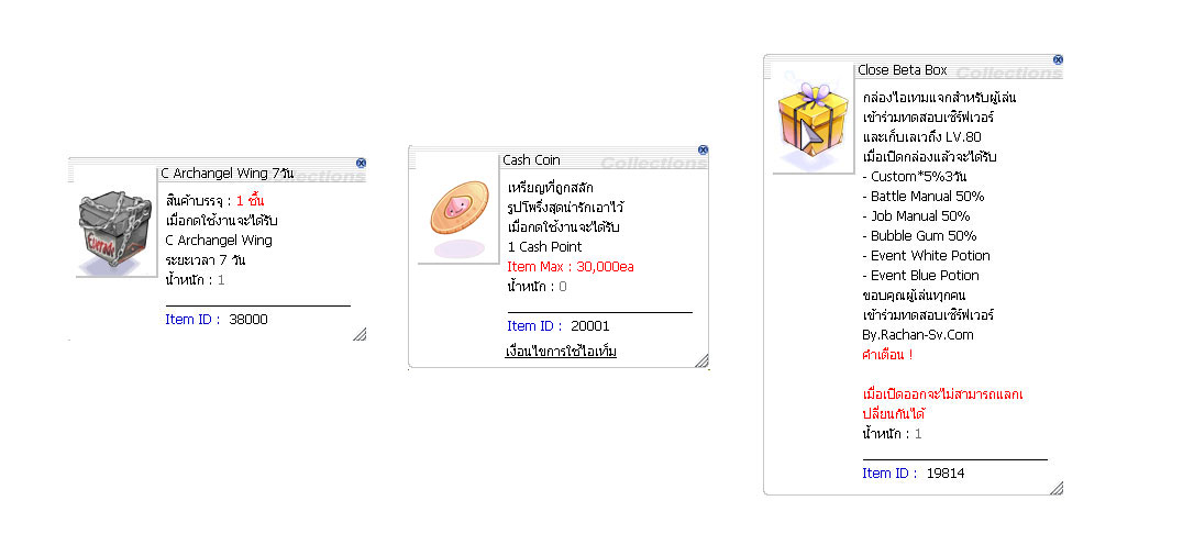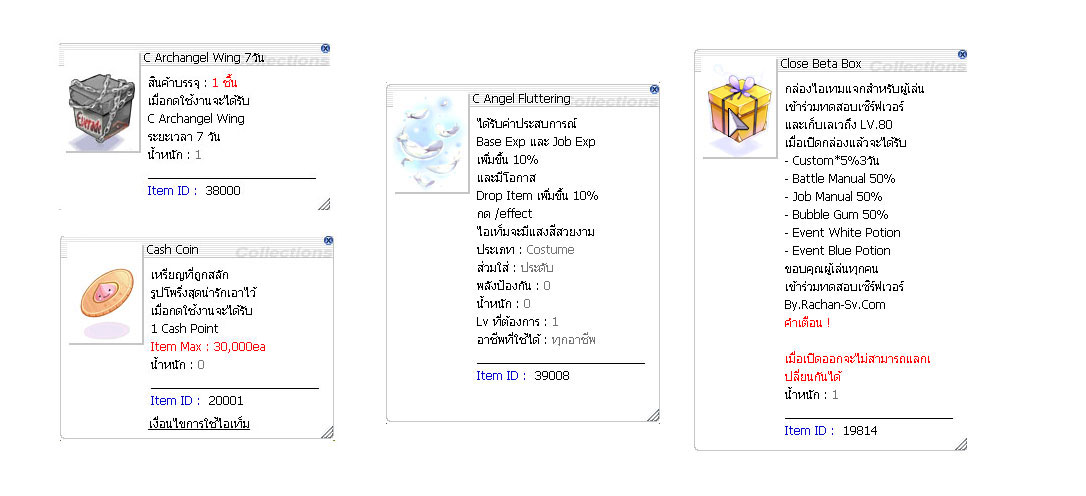 คำแนะนำ : เซิฟเวอร์เป็นรูปแบบเก็บเลเวและใช้เวลาในการเล่น ไม่เหมาะกับผู้เล่นที่รักความสะดวกสบาย ทางเซิฟเวอร์มี ระบบ ITEM Exp* และ ไอเทมคอสตูม Exp%Drop% และระบบ VIP ช้วยเหลือเล็กน้อยในการเก็บ Lv.