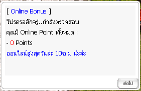 การนับแต้ม = ผู้เล่นจะได้รับ 1 ช.ม ต่อ 10 แต้ม ( ออนไลน์สูงสุด 10 ช.ม / 1วัน = 10 ช.ม 100 แต้ม) เอาไปเก็บสะสมกัน