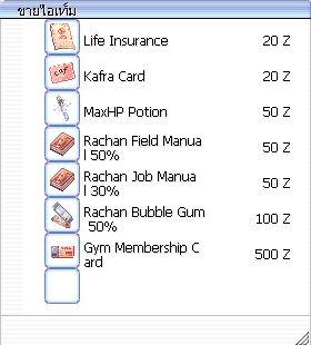 Item_Online_Bonus = จะถูกสลับสับเปลี่ยนไปในแต่ละ อาทิตย์ตามการปิดปรับปรุงเซิร์ฟเวอร์ ( ขึ้นอยู่กับความเหมาะสมของทีมงาน )