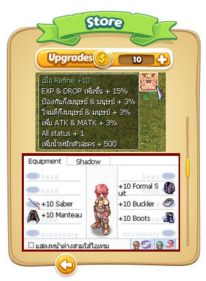 คำแนะนำ : ระบบจะทำงานเมื่อ เสื้อ / อาวุธ / มือเดียวรวมโล่ / ผ้าคลุมและรองเท้าจะต้อง +5 +6 +7 +8 +9 +10 เท่ากัน !!