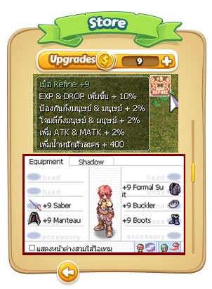 Refine_Bonus = เพี่ยงคุณ ตีบวก เสื้อเกราะ/โล่/ผ้าคุม/ลองเท้า/อาวุธ ตั้งแต่ +5 ทั้งตัวขึ้นไปก็สามารถใช้งาน Refine_Bonus ได้ทันที